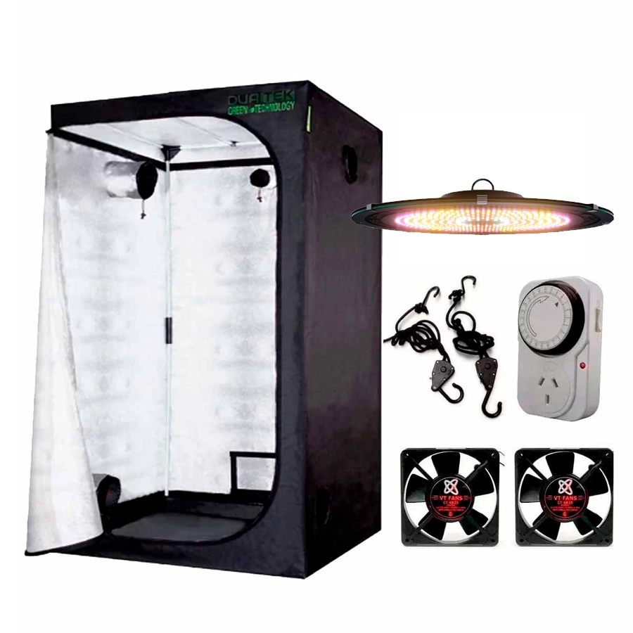 Combo Indoor 60x60x160 Duaitek con 5 mangas de ventilacion y panel led Mars Orbiter Evolution 120W