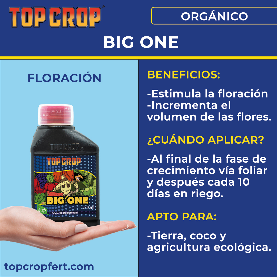 Big One 250ml de Top Crop es un estimulador de la floración formulado a base de extracto de alga del género Ascophyllum nodosum.
